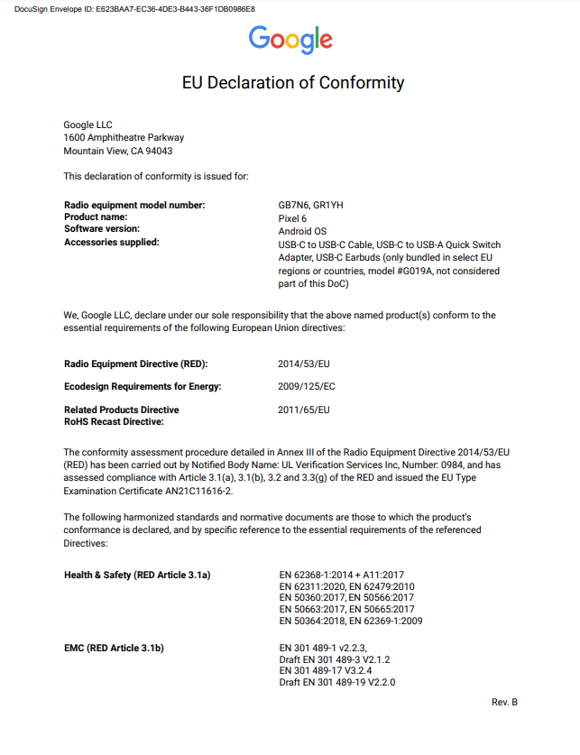 Declaration of Conformity: View Document