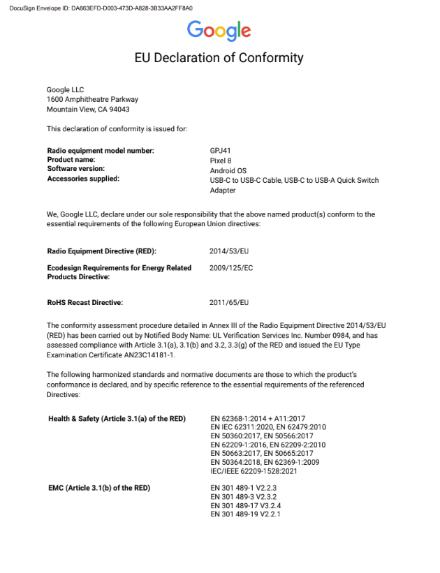 Declaration of Conformity: View Document