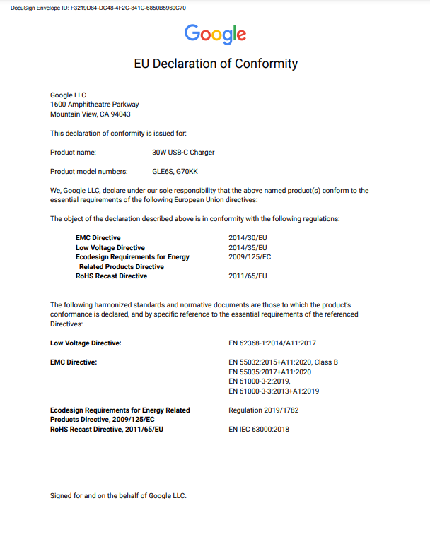 In summary, the Google USB-C Fast Charger 30W GA03502-EU in white offers a fast, efficient and safe charging solution. Its elegant design, combined with powerful fast charging capability and high compatibility with USB-C devices, makes it an ideal accessory for the modern technology user.